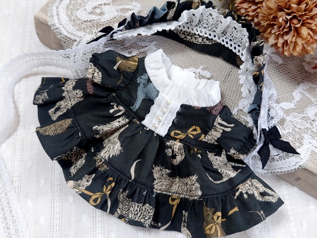 10cmぬいサイズ クラシカルキャットワンピースセット ブラック