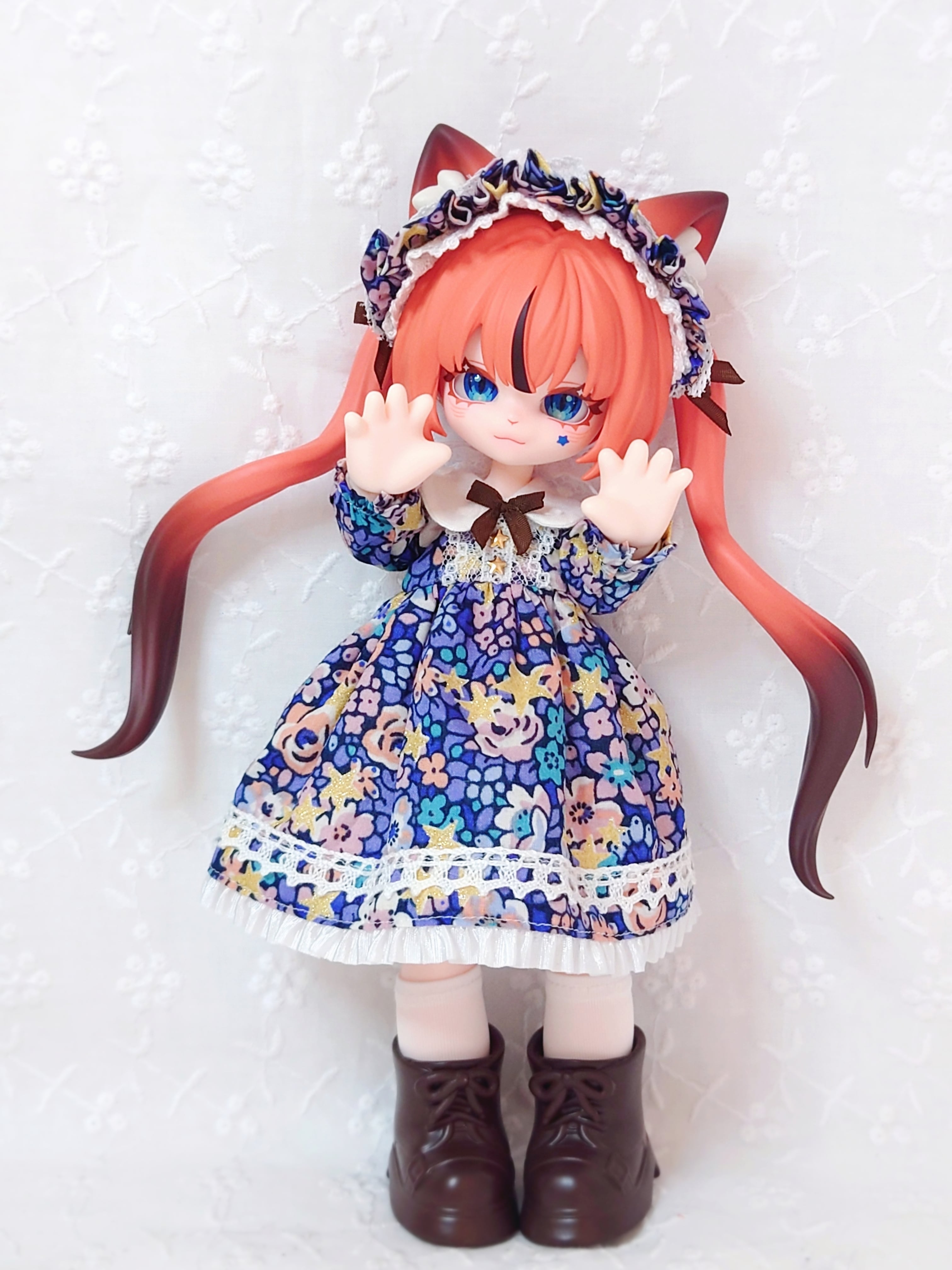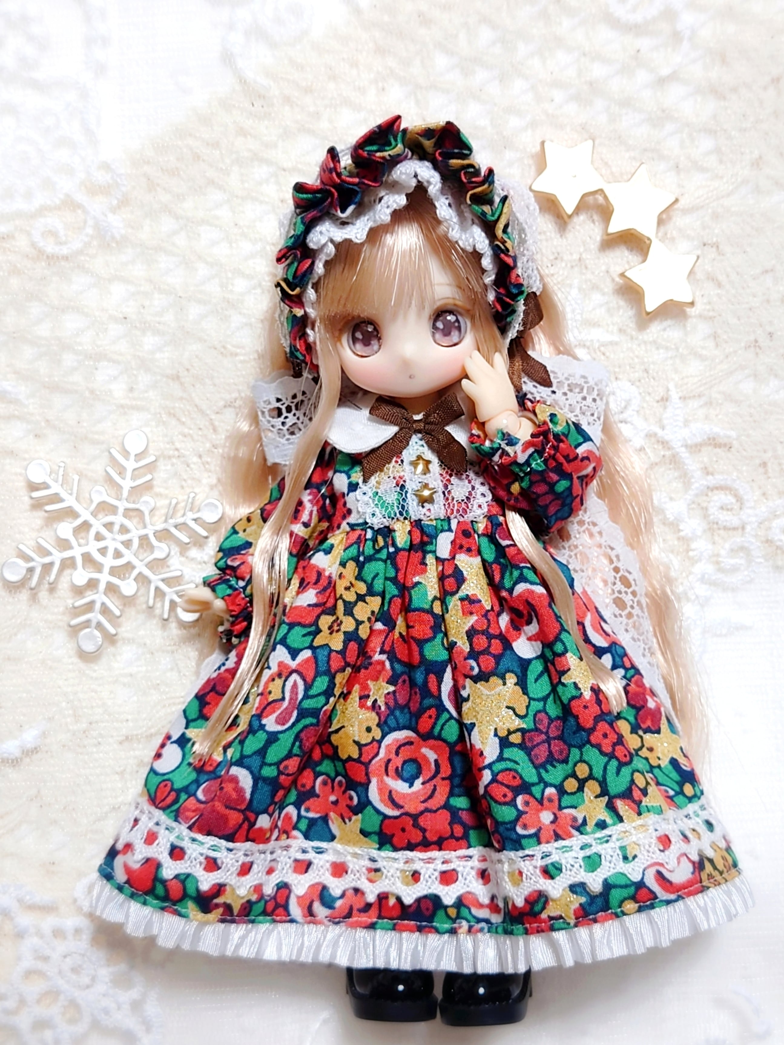 ・特定のボディだけでなく、何種類かのボディに着せられるよう、自分でデザインし、自作の型紙で制作しています。ボディにより着用イメージや着丈はそれぞれ異なります。