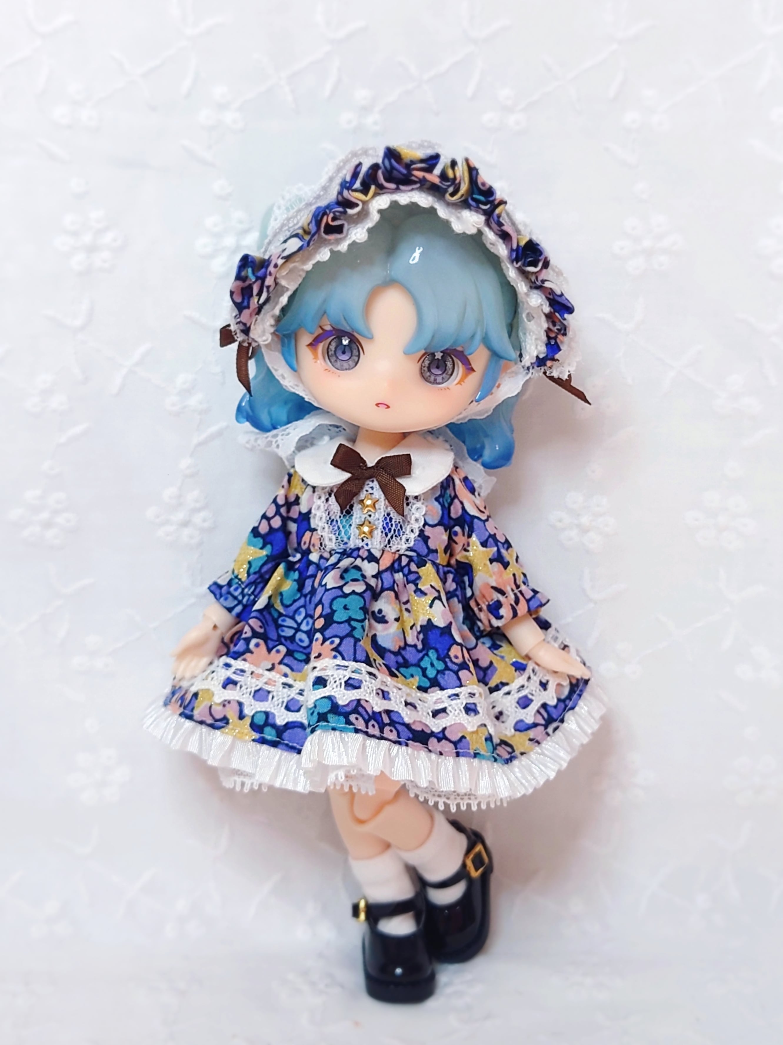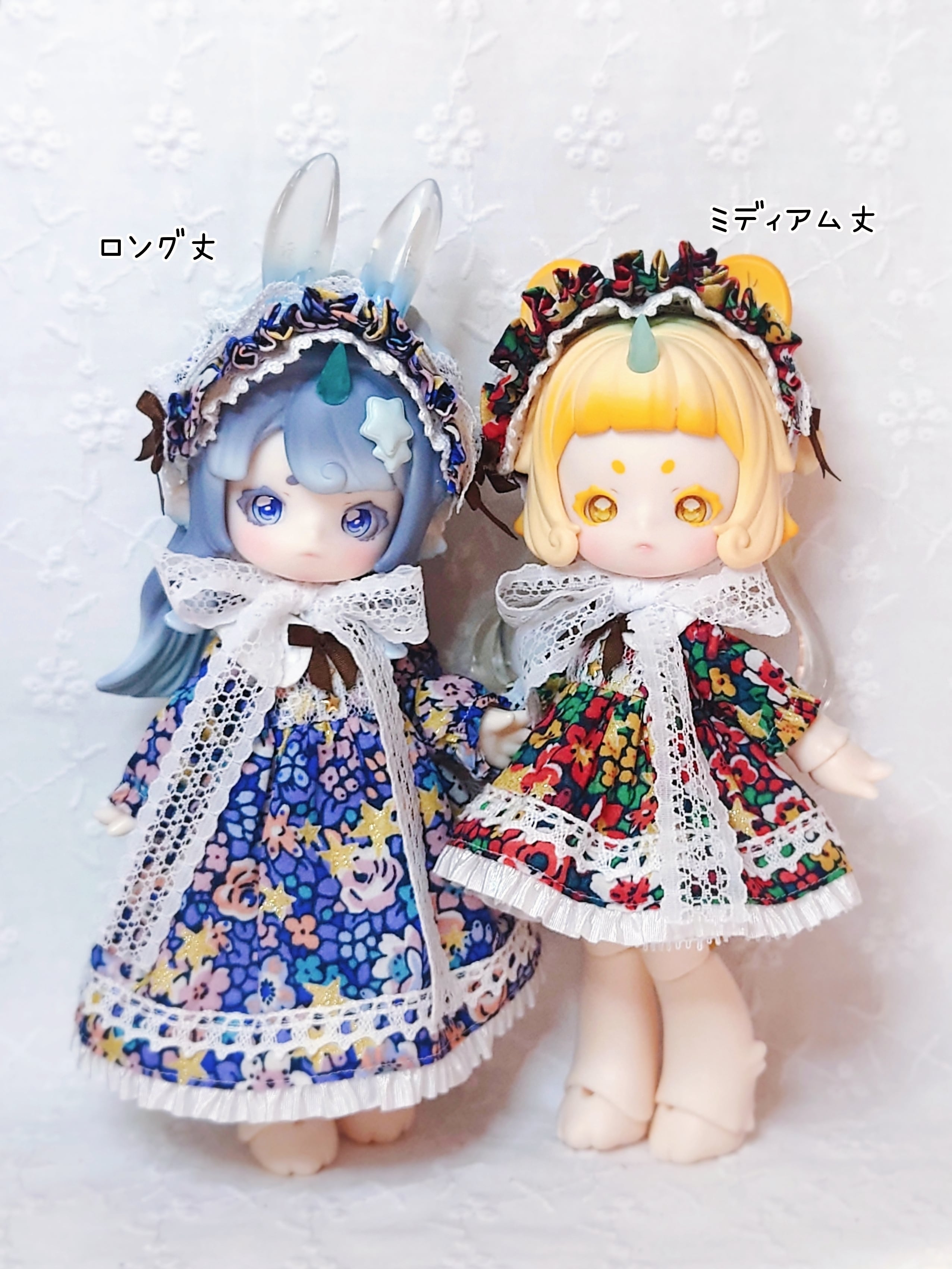 ・特定のボディだけでなく、何種類かのボディに着せられるよう、自分でデザインし、自作の型紙で制作しています。ボディにより着用イメージや着丈はそれぞれ異なります。
