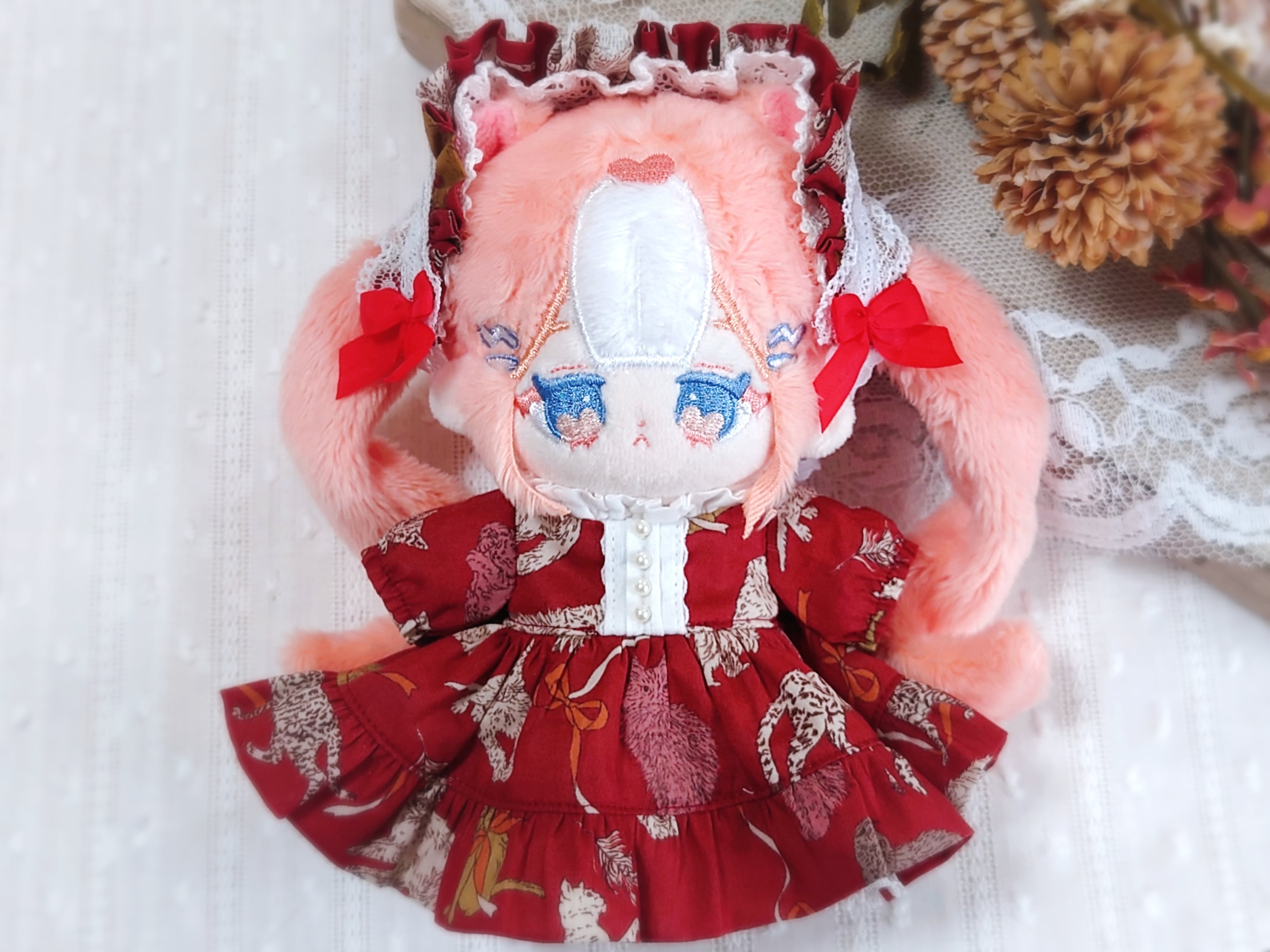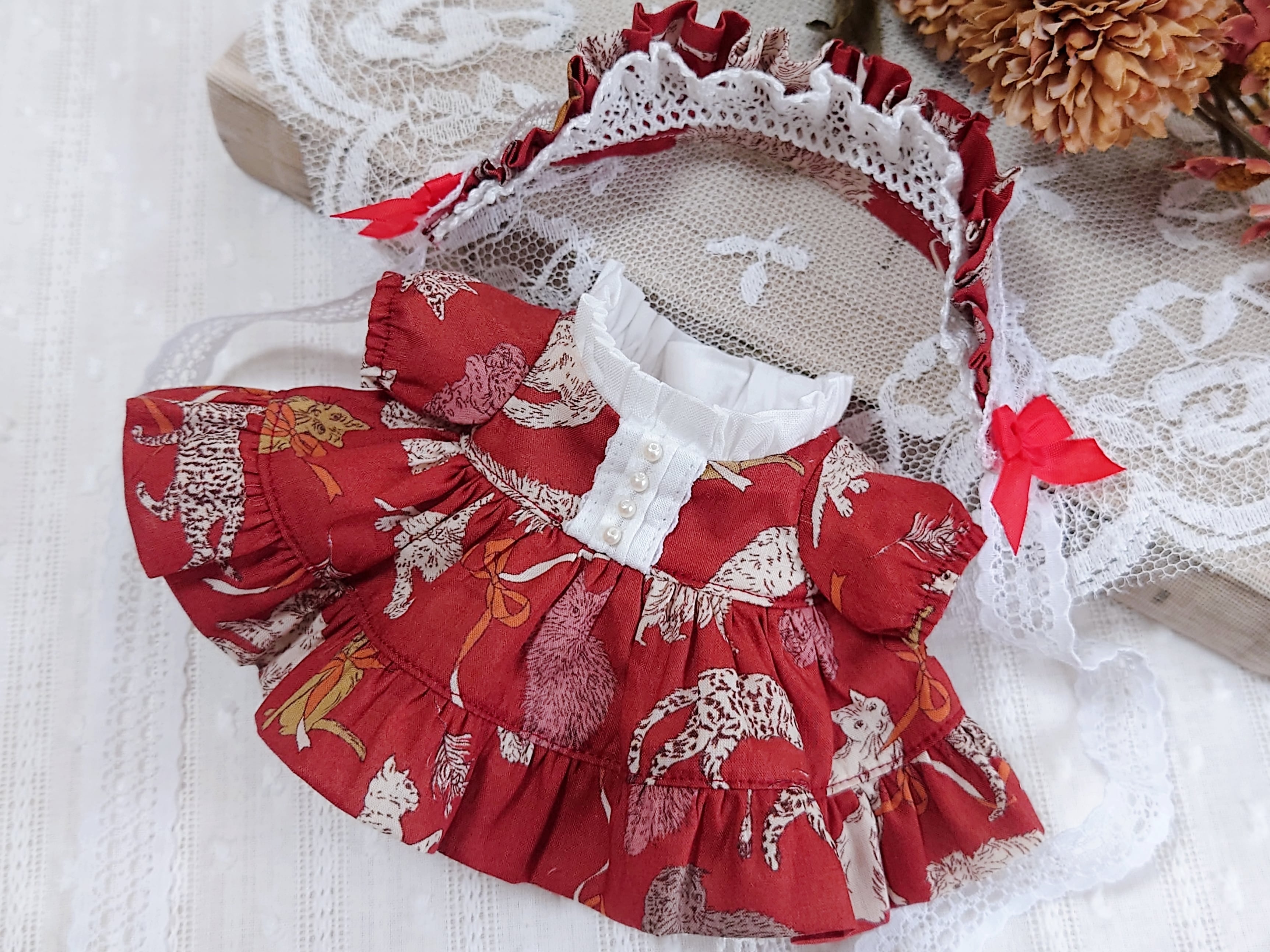 10cmぬいサイズ クラシカルキャットワンピースセット レッド