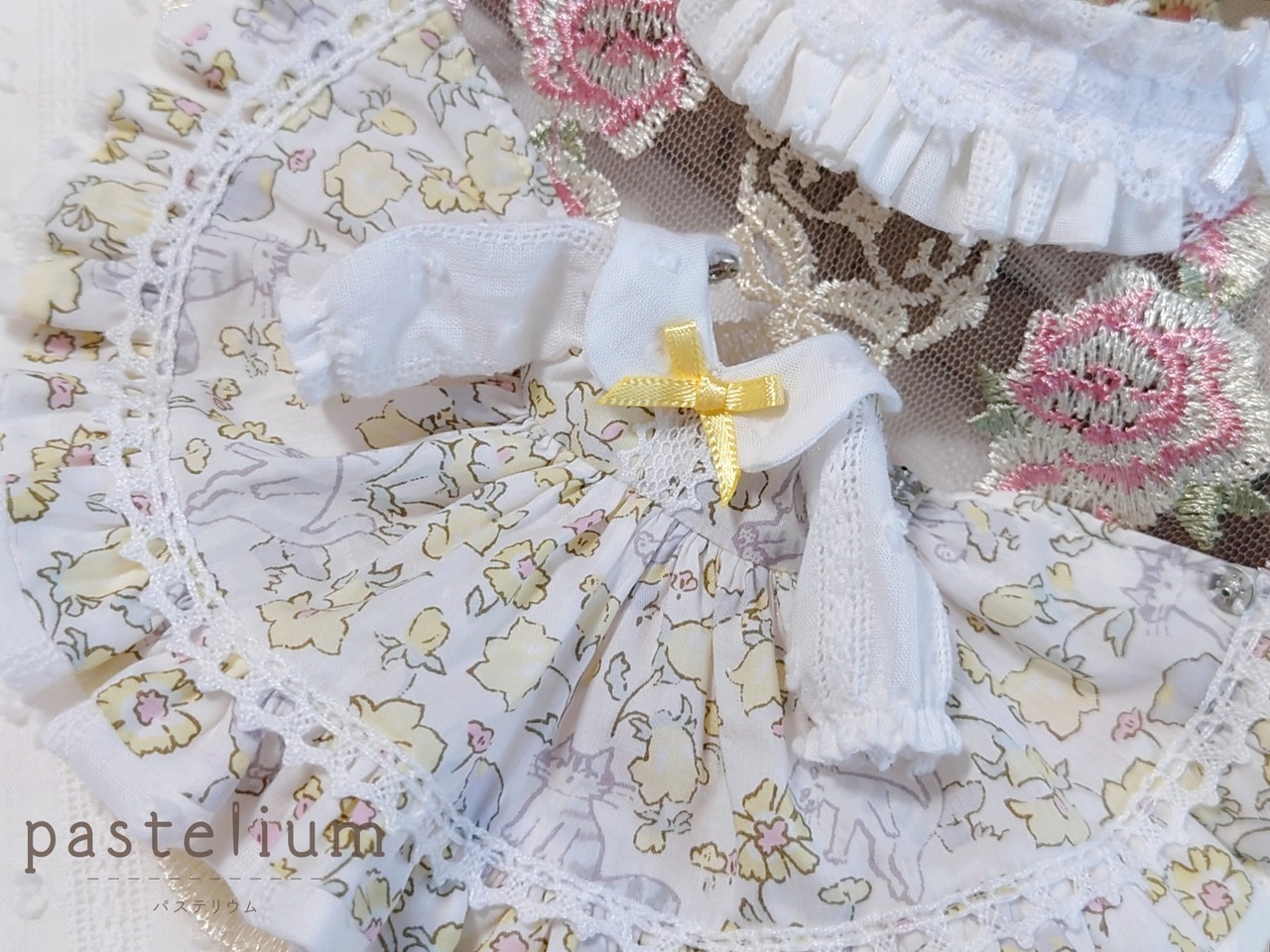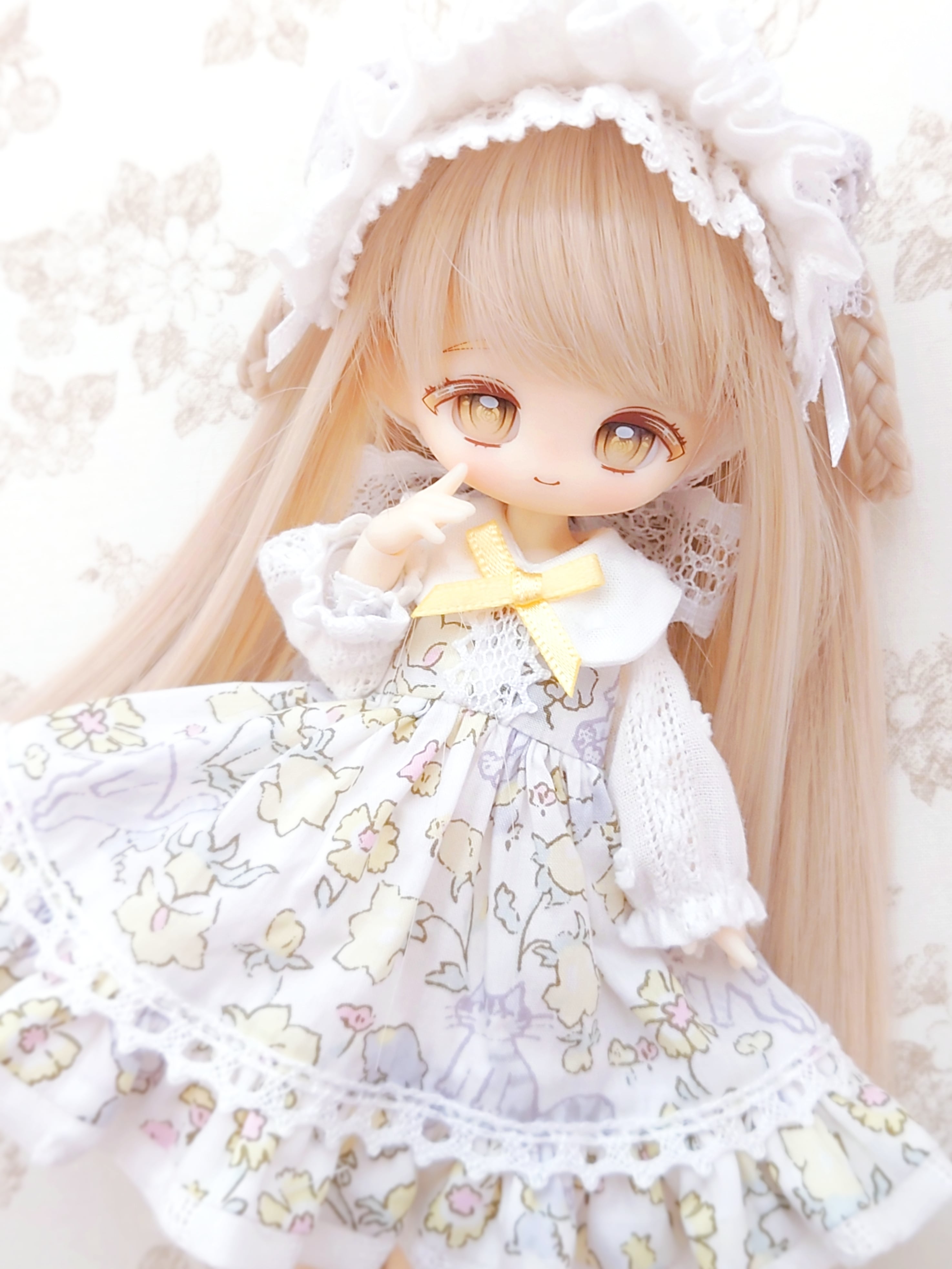 ・特定のボディだけでなく、何種類かのボディに着せられるよう、自分でデザインし、自作の型紙で制作しています。ボディにより着用イメージや着丈はそれぞれ異なります。